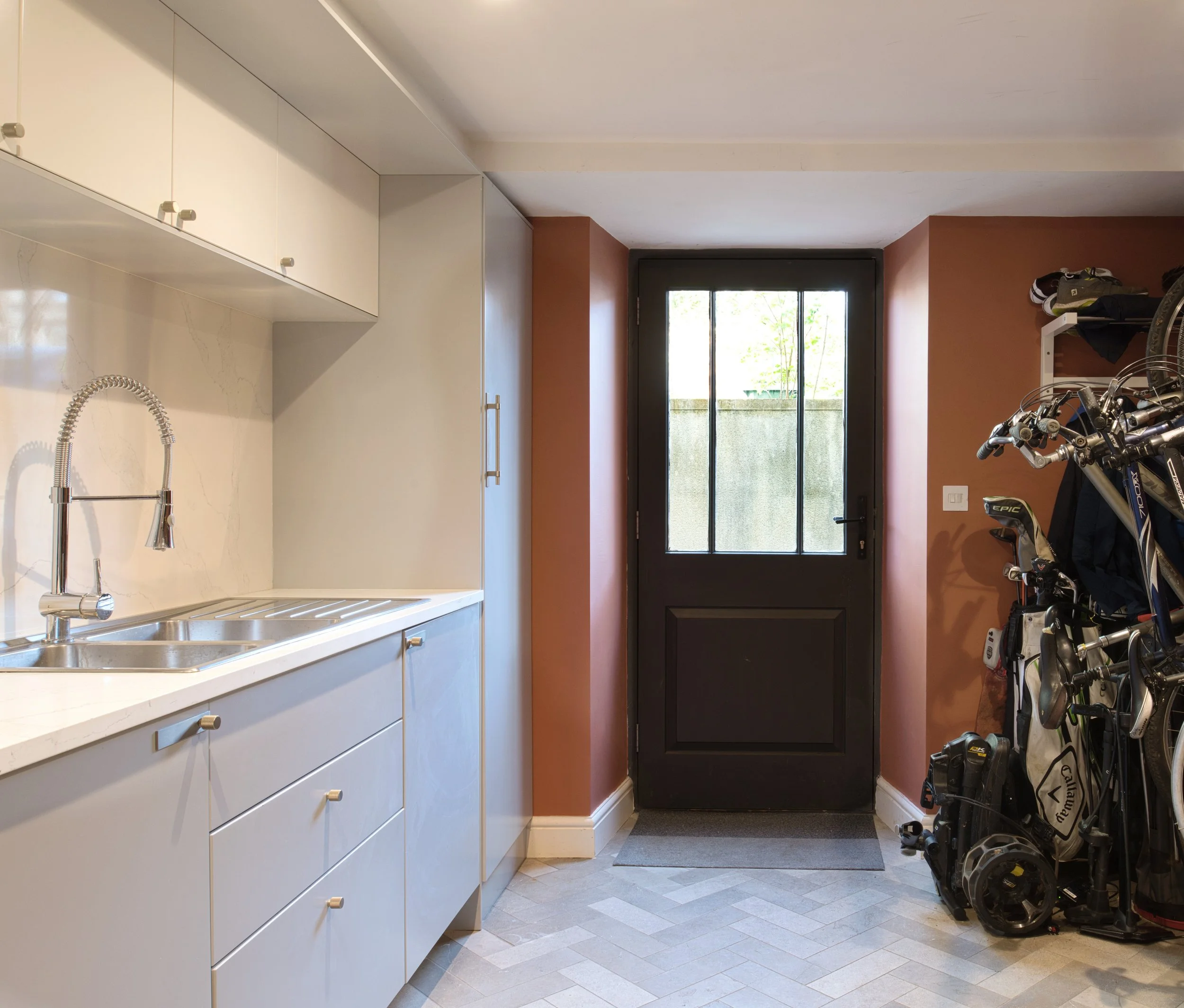 If you have an existing building with a suspended timber floor sometimes it is not always as much of a challenge to move a kitchen or bathroom. The former outhouse/ now utility room has the best view of the garden and there is scope to move it to a darker part of the house (with ventilation of course).