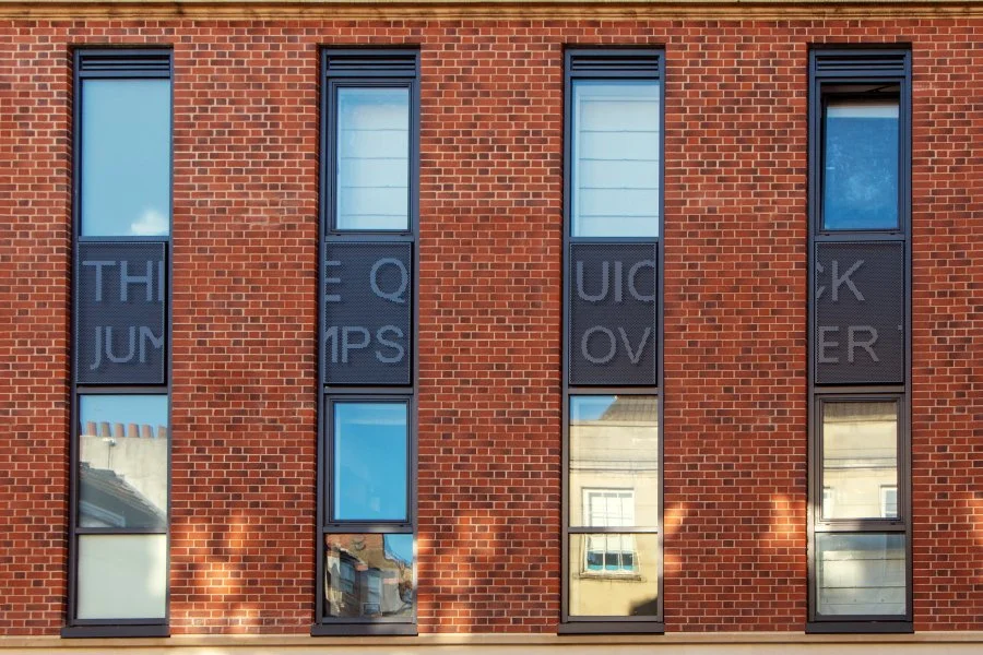 Subtle contemporary elements are carefully integrated, including perforated screens that discreetly conceal ventilation louvres and bespoke Gill Sans-inspired typography artwork referencing the site’s literary heritage, particularly its association with Douglas Cleverdon’s historic bookshop.